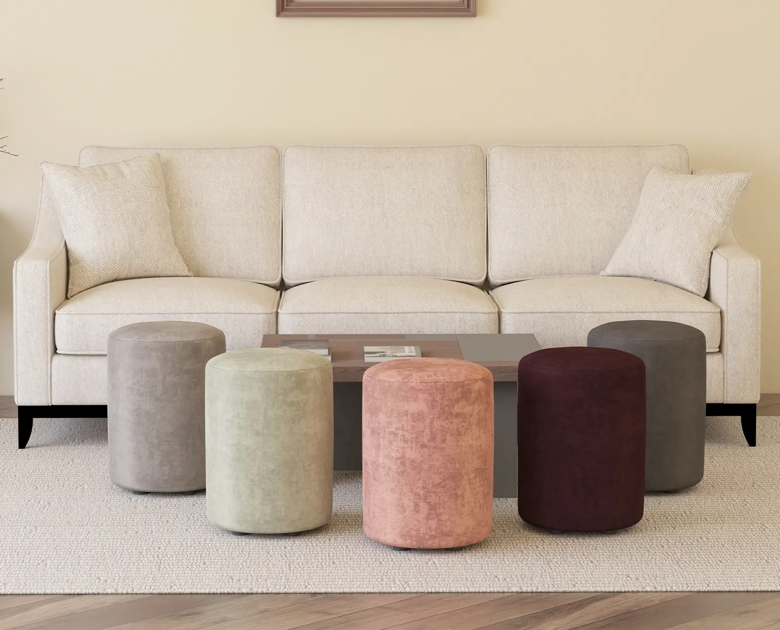 Quality fabric round stools (chenille and flat weave) produced by craftsmen and women at our own Yorkshire factory.